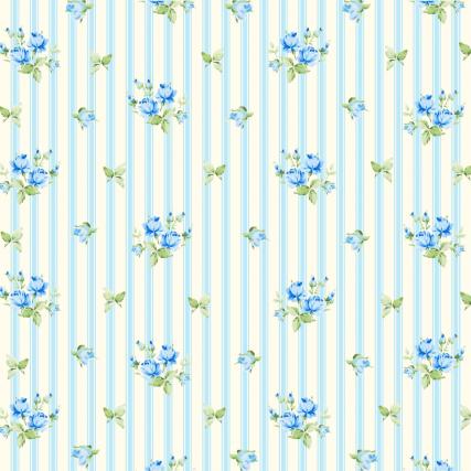 Budgie Bird Bell & Gift Box - Floral Stripe Blue